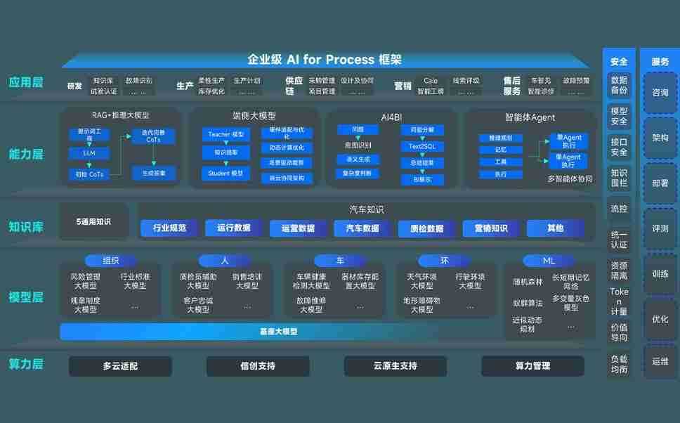 乐天堂官网问学智车解决方案是一套基于AI技术的汽车行业智能化系统,,,覆盖从底层算力到顶层AI应用的全栈方案。。方案由算力层、、模型层和应用层组成:算力层,,,,方案支持多种一体机配置,,具备云端灵活部署、、多云适配以及动态优化计算资源的能力;模型层,,乐天堂官网问学平台版提供了企业级AI应用一站式构建与管理平台,,,支持基于后训练强化技术的汽车企业专属模型的训练、、、评测和运营;应用层,,,,乐天堂官网问学DeepSeek版提供包括超级员工、、、智能招采、、、、智能营销、、智能客服、、、AI for BI等一系列解决方案,,可助力汽车行业实现数字化转型,,,,让管理更智能、、响应更敏捷。。。